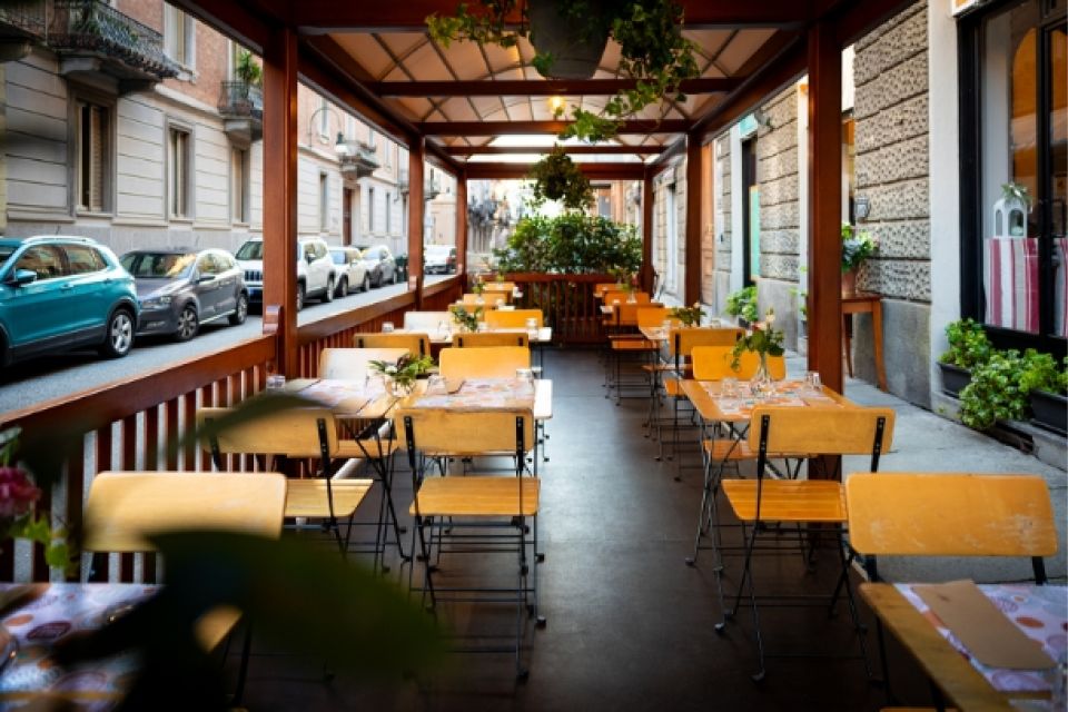 All’esterno, un dehor curato e fiorito ti accoglie con semplicità. Nella bella stagione, è il posto perfetto per godersi un pranzo o una cena all’aperto, nel silenzio vivace del quartiere Cit Turin.